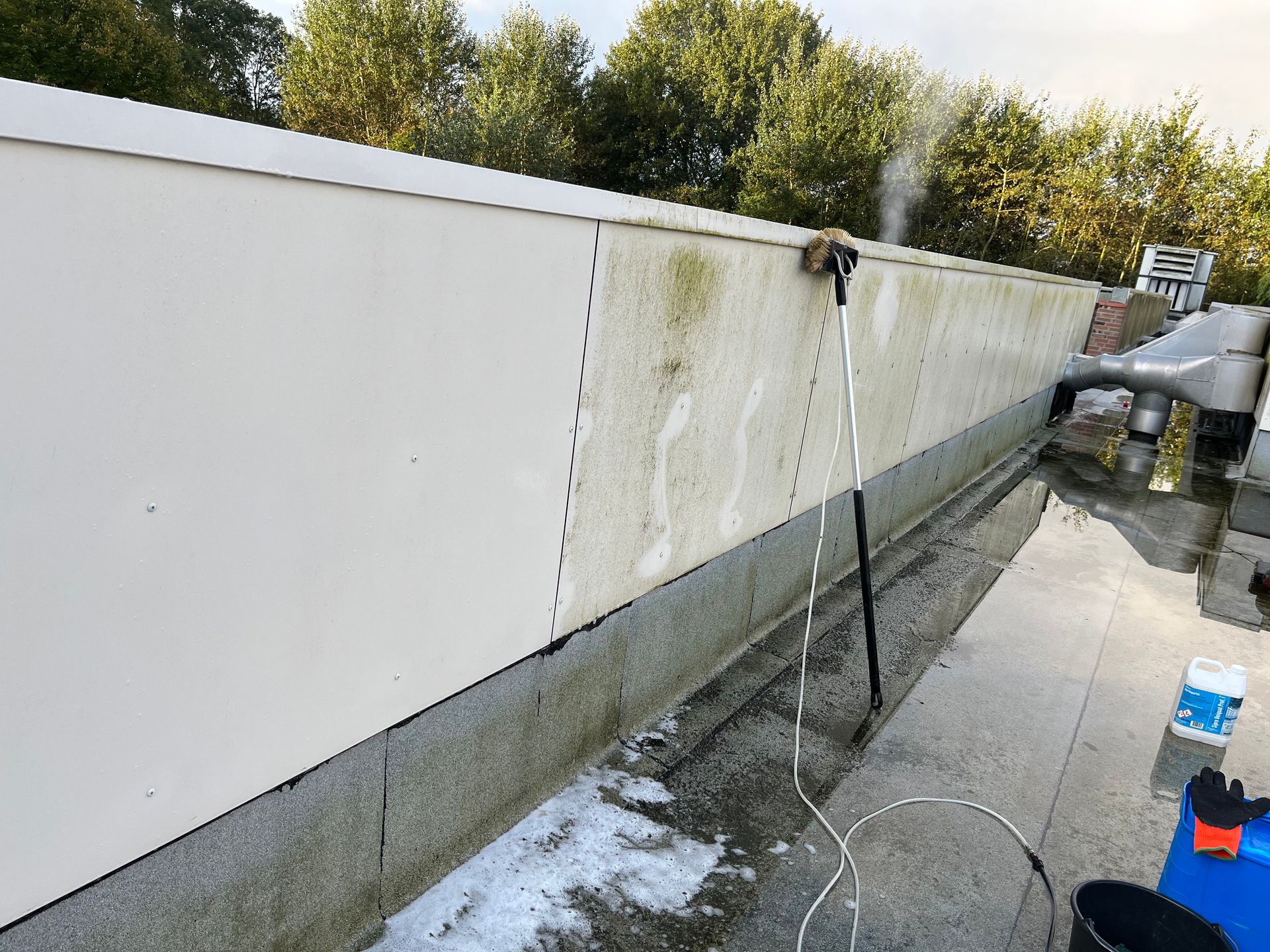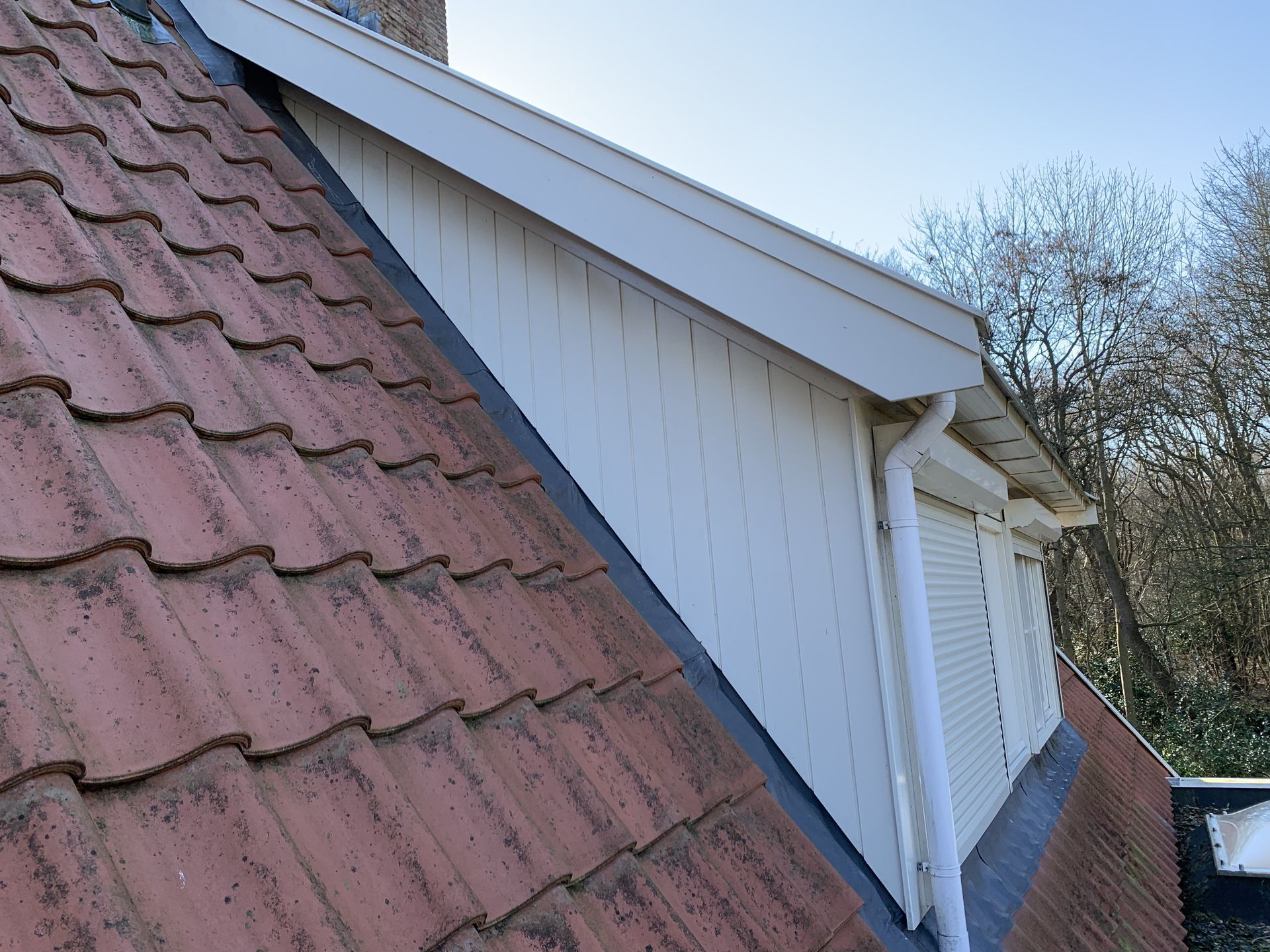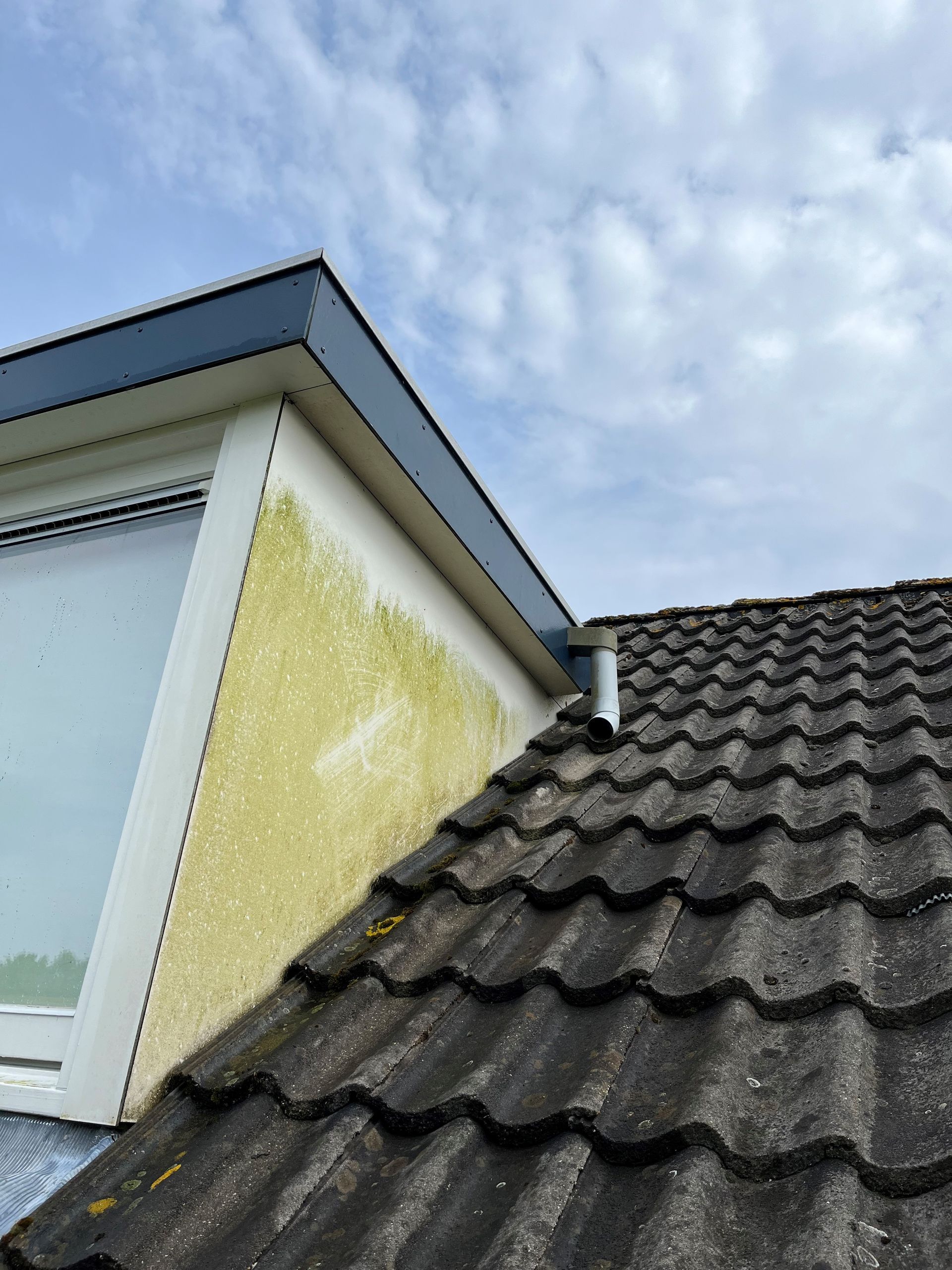 Klus in Burgh Haamstede. De dakkapel was niet meer wit maar groen. Vooral de kanten die weinig zon krijgen worden al snel groen. Gelukkig ziet de dakkapel er weer als nieuw uit.